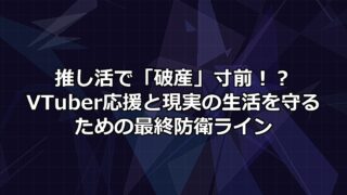 こんにちは、V界隈の古参ライターです。VTuberの推し活、本当に尊いですよね😭✨。推しへの愛が深まるほど、「もっと応援したい!」という気持ちが爆発するのも痛いほどわかります。でも、その熱い気持ちが時に、現実の生活を脅かす「破産」という名の...