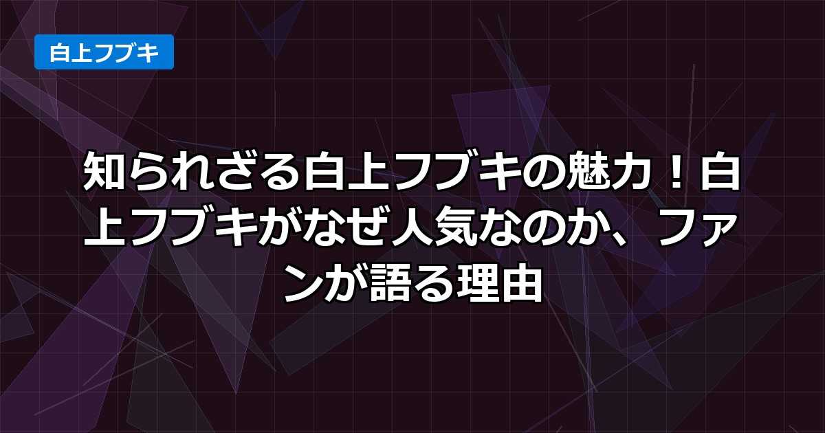 2026年現在の最新トレンドも踏まえ、白上フブキさんの真価に迫ってみましょう。