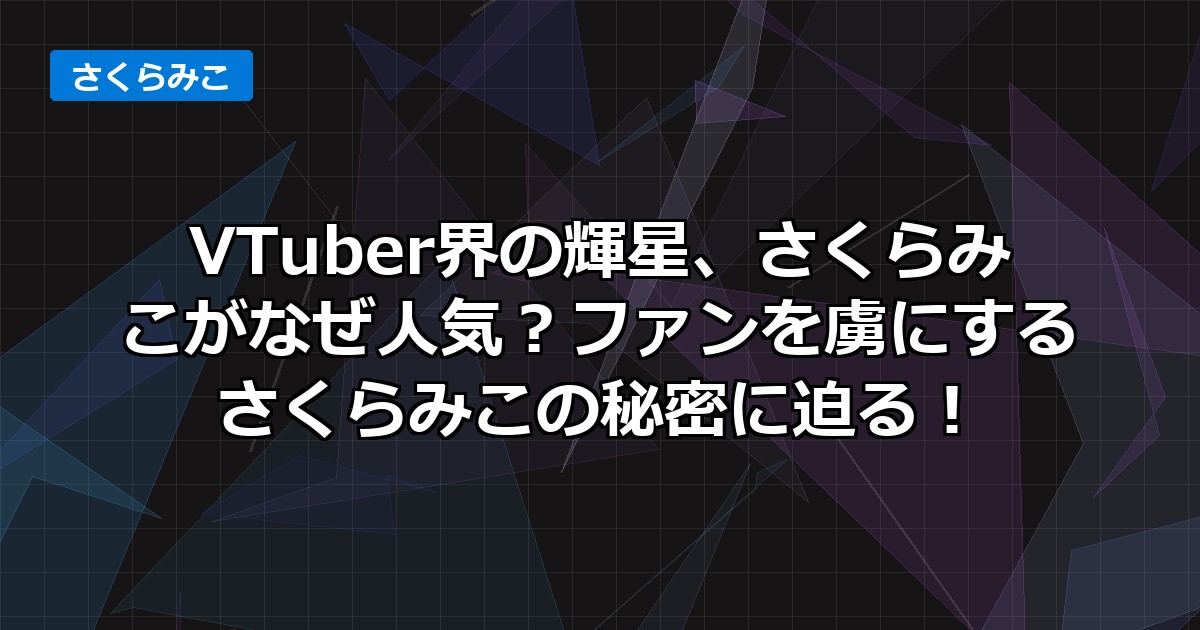 今回は、ホロライブの中でもひときわ輝く存在感を放つ、さくらみこさんの人気の秘密に深く迫っていきたいと思います。