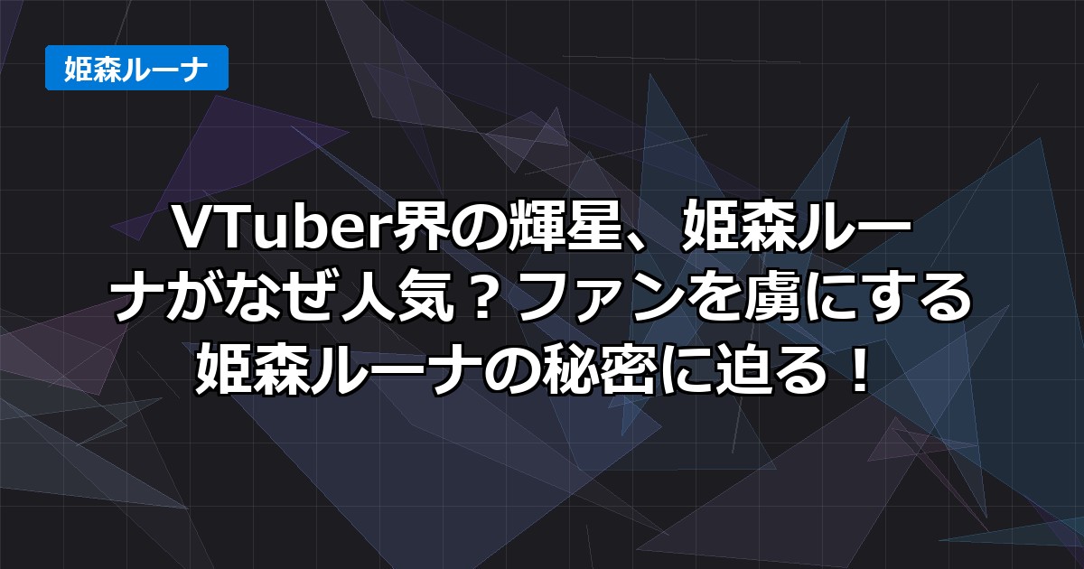 VTuber界の輝星、姫森ルーナがなぜ人気?ファンを虜にする姫森ルーナの秘密に迫る!