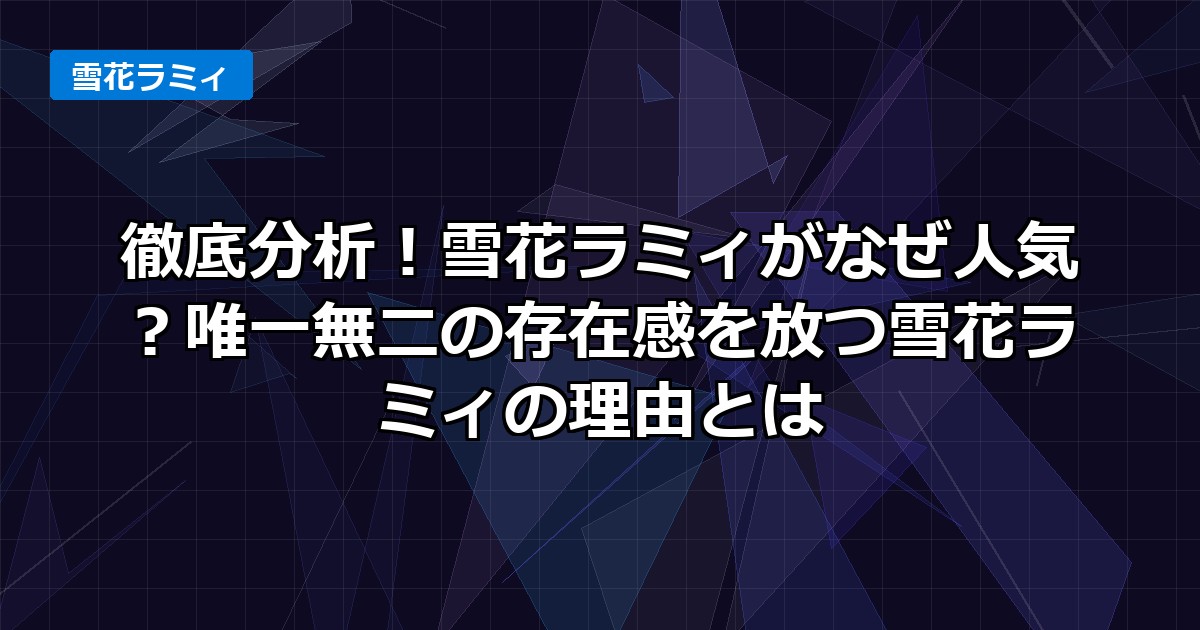 彼女がなぜこれほどまでに多くのファンを惹きつけ、「雪花ラミィ なぜ人気」と検索されるのか、その深淵を探るのはマジで尊いテーマですね😭✨。