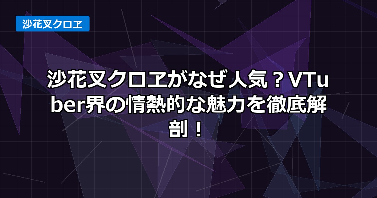 V-Walker編集長の私が、長年のオタク目線で沙花叉クロヱの「真の魅力」を深掘りし、その人気の秘密を徹底的に解剖しちゃいます!これ読んだら、あなたも沼にハマること間違いなし!てぇてぇ…😭✨
