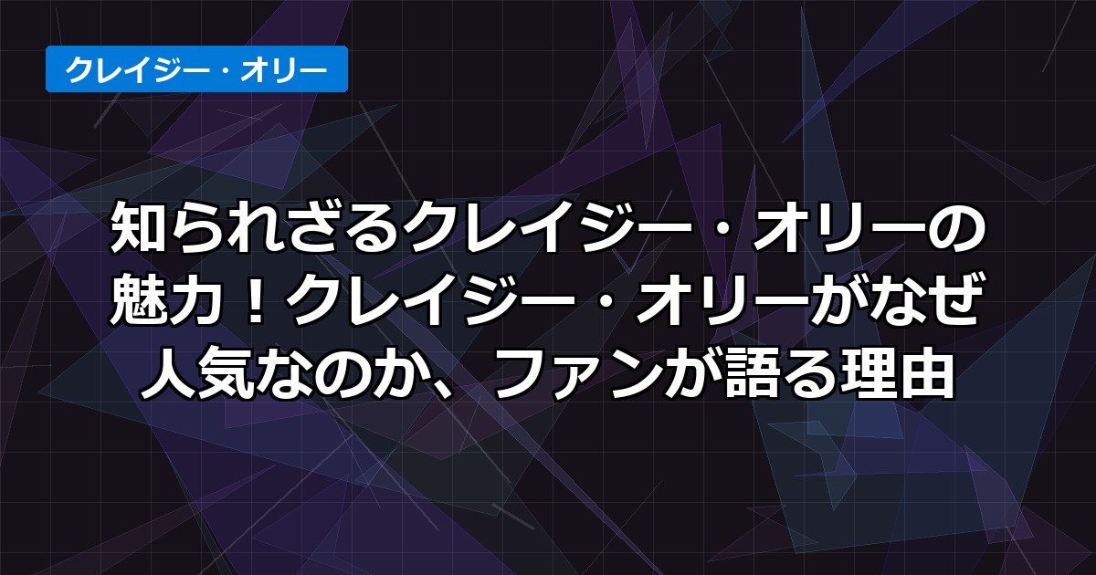今回は、クレイジー・オリー なぜ人気なのか、その魅力の秘密を徹底的に解説しました。