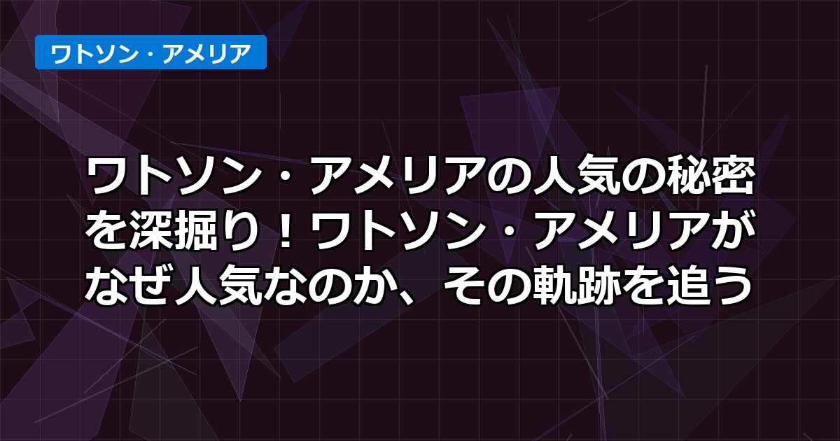 ワトソン・アメリアの人気の秘密を深掘り!ワトソン・アメリアがなぜ人気なのか、その軌跡を追う