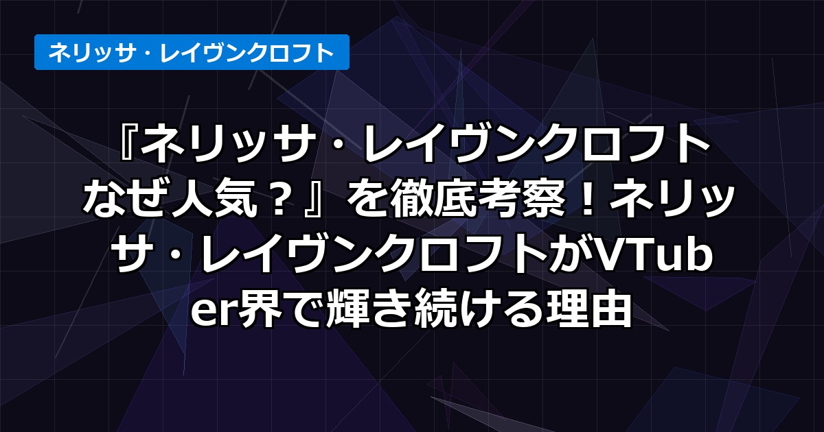 今回は、ホロライブENの歌姫、ネリッサ・レイヴンクロフト なぜ人気?という問いに迫ります。