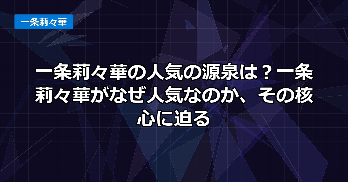 今回は、なぜこれほどまでに一条莉々華が人気なのか、その核心に迫っていきます。