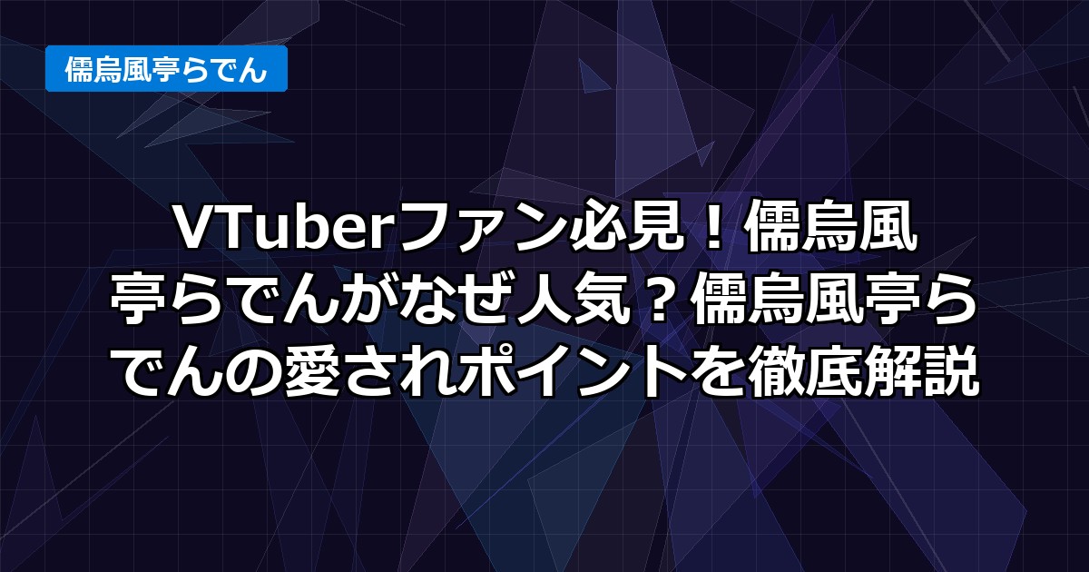 VTuberファン必見!儒烏風亭らでんがなぜ人気?儒烏風亭らでんの愛されポイントを徹底解説