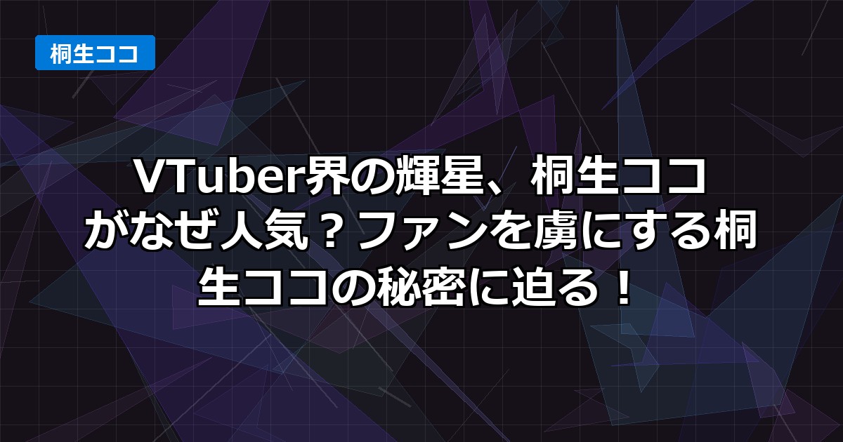 今回は、VTuber界の輝星、桐生ココ会長の人気の秘密と魅力について深掘りしてきました。