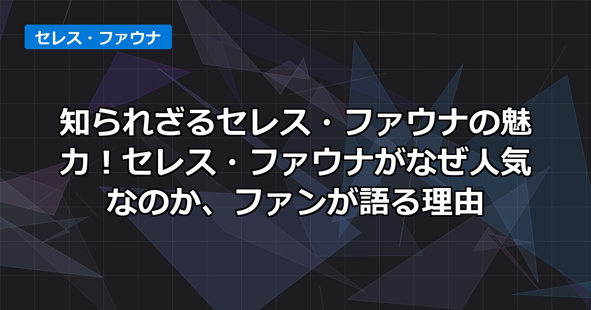 今回は、セレス・ファウナさんがなぜこれほどまでに人気なのか、その多岐にわたる魅力に迫りました。