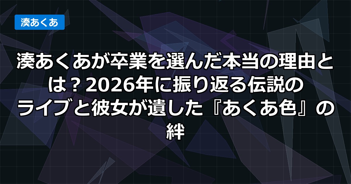 2026年になっても、SNSでは「#湊あくあ」のハッシュタグで思い出を語り合うファンが絶えません。これは彼女が、単なる配信者ではなく、私たちの人生の一部だった証拠です。✨