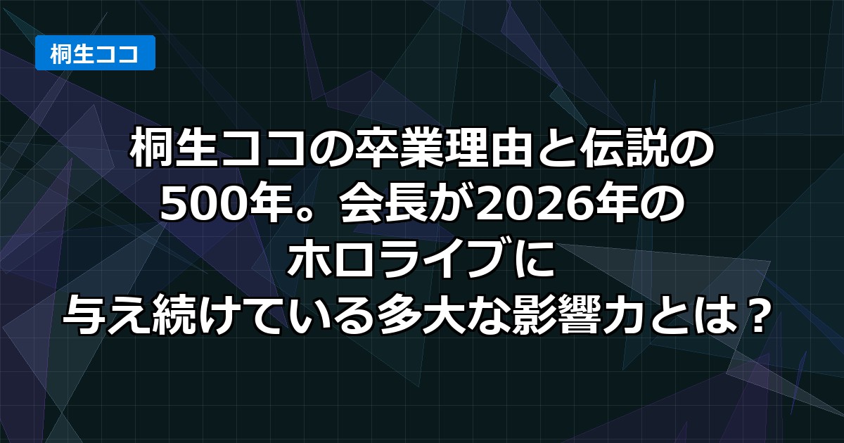 今回は、ホロライブ4期生にして伝説の龍、桐生ココ会長の卒業理由を改めて振り返るとともに、2026年の視点から彼女の影響力を徹底解剖します!🚀