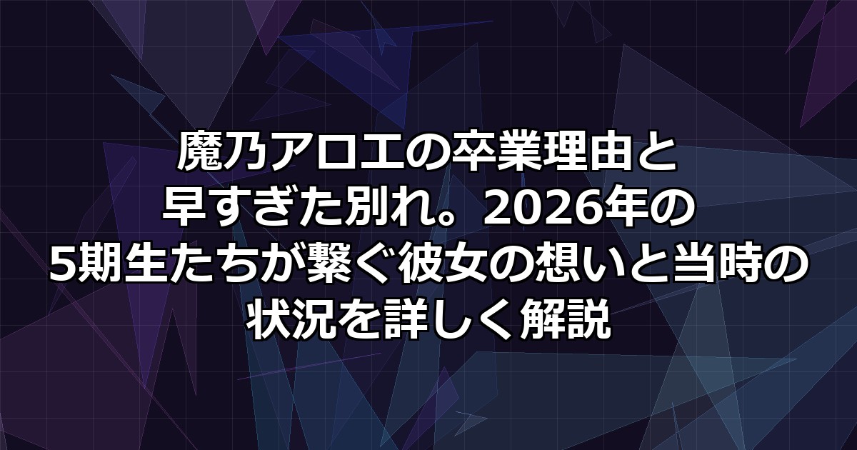 今回は、魔乃アロエさんの卒業理由とその背景、そして2026年の今だからこそ語れる彼女が遺した絆について、古参ライターの視点で熱く解説していきます!🙌