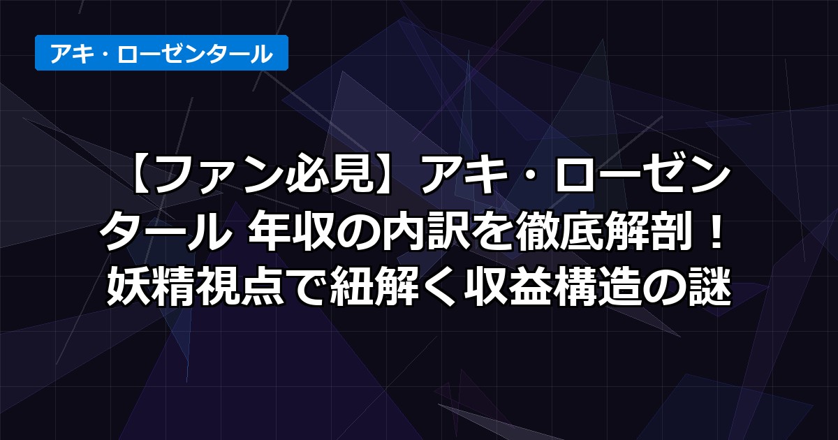 これは「アキ・ローゼンタール 収入源」を語る上で、決して無視できない重要な要素だね。