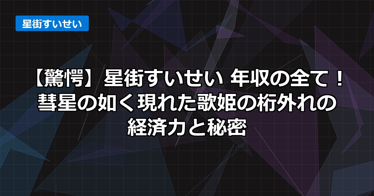 そこで今回は、2026年最新のデータと業界の裏話、そして筆者の鋭い分析(ただのオタクの勘とも言う)を元に、星街すいせいさんの驚異的な収入の秘密を徹底解剖していきます!✨