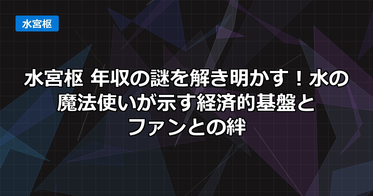 これらの要素を総合すると、水宮枢さんの年収は、数千万円から億単位に到達している可能性も十分にあります。