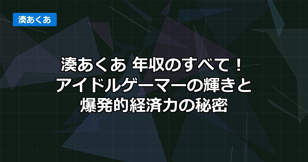 湊あくあ 年収のすべて!アイドルゲーマーの輝きと爆発的経済力の秘密
