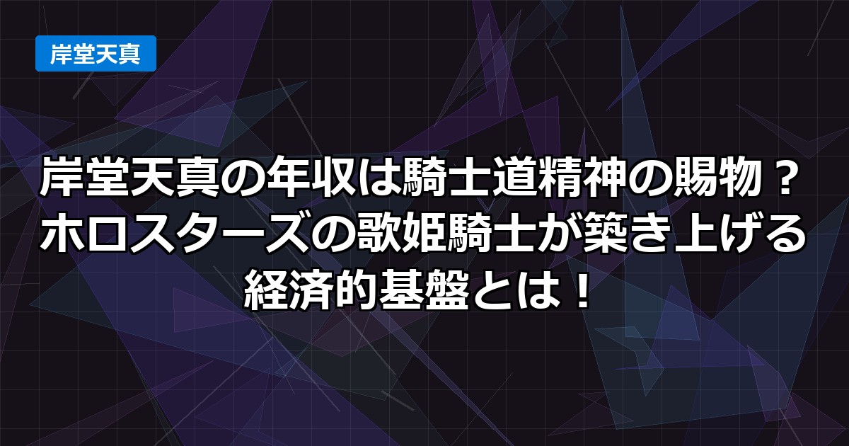 岸堂天真さんの年収は、彼の「騎士道精神」と「歌声」という二つの強力な武器によって、着実に築き上げられていることが分かりましたね。