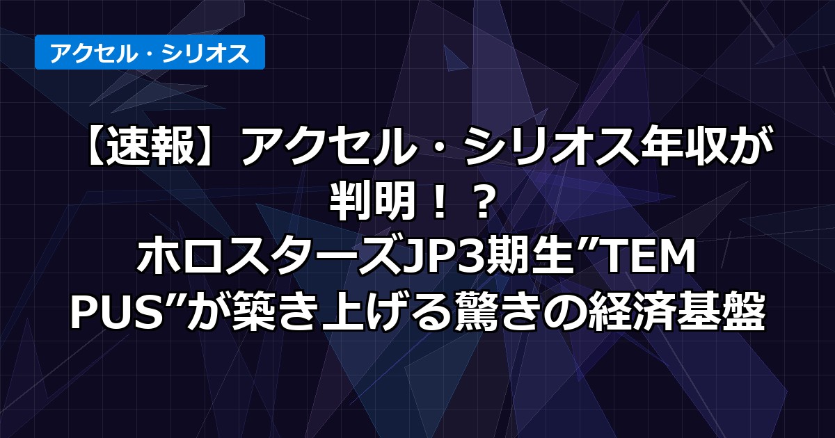 ホロスターズJP3期生「TEMPUS」のメンバーとして、その圧倒的な存在感を放つアクセル・シリオスさん✨。彼の年収、気になりますよね!?