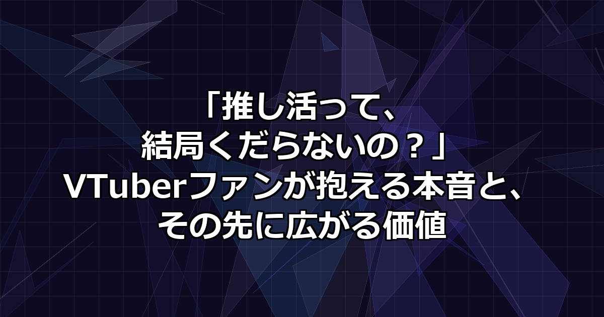 VTuber推し活が「くだらない」と感じる瞬間とは? 🤔