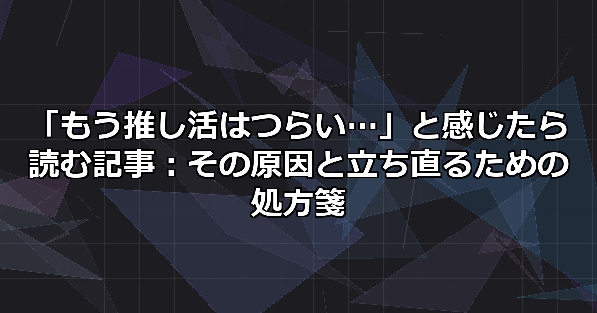 「もう推し活はつらい…」と感じたら読む記事:その原因と立ち直るための処方箋
