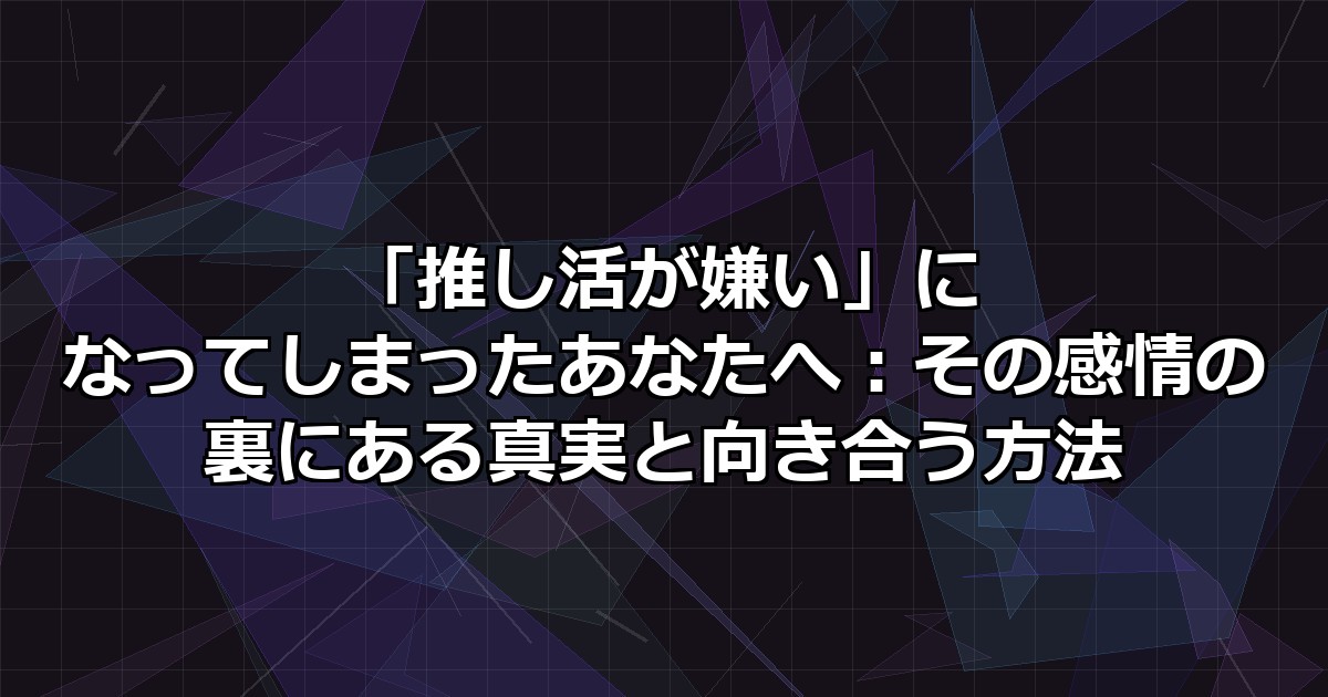 この記事では、そんな「推し活が嫌い」という複雑な感情の裏にある真実と、それに向き合い、前向きに進むための方法を、古参オタクの視点から深掘りしていきます😇。