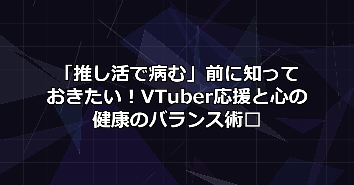 今回は、VTuber応援をもっと長く、もっと健やかに楽しむために、「推し活で病む」前に知っておきたい心の健康のバランス術について、古参ライターの視点から深く掘り下げていきます。最後まで読んでいただけると、きっとあなたの推し活ライフがより豊かになりますよ。🙌