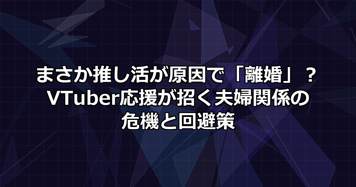 この記事では、VTuber黎明期から業界を見守ってきた古参ライターが、なぜ尊い推し活が家庭の危機を招くのか、その「落とし穴」を鋭く分析します。💡