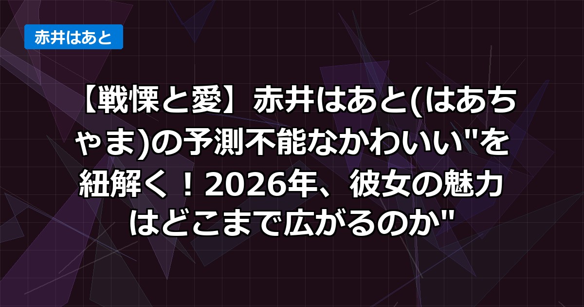 2026年の今、赤井はあとの「かわいい」は、どこまで広がりを見せるのでしょうか?
