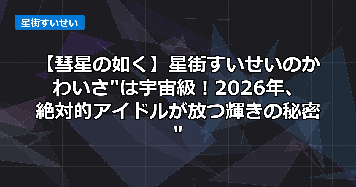 今回は、2026年のVTuberシーンで圧倒的な存在感を放つ星街すいせいさんの「かわいい」に焦点を当て、その多角的な魅力を深掘りしました。