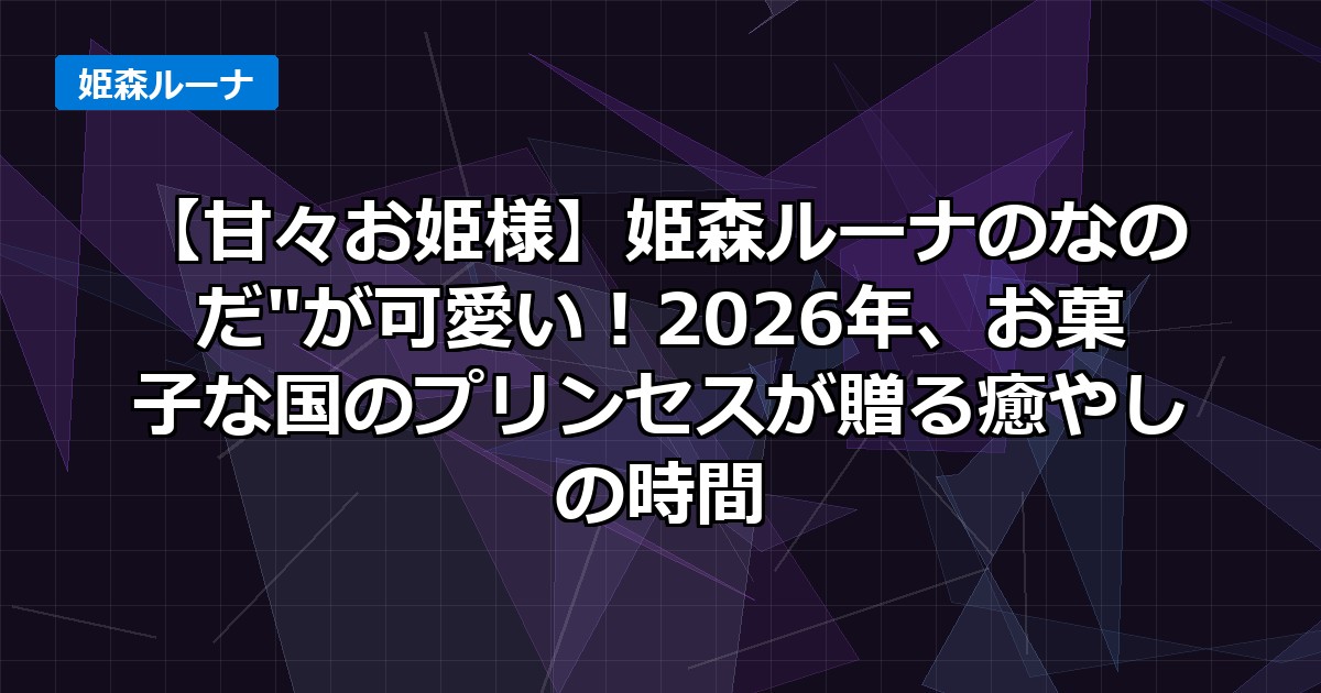 今日は、ホロライブの愛すべきお姫様、姫森ルーナちゃんの魅力を2026年の視点から徹底解剖していくのだ!