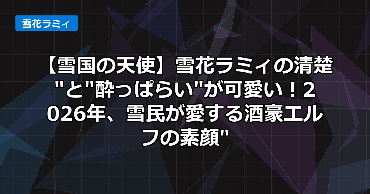 今回は、雪花ラミィさんの清楚なエルフとしての姿と、お酒を愛する酒豪な一面という、二つの大きな魅力に迫ってきました。