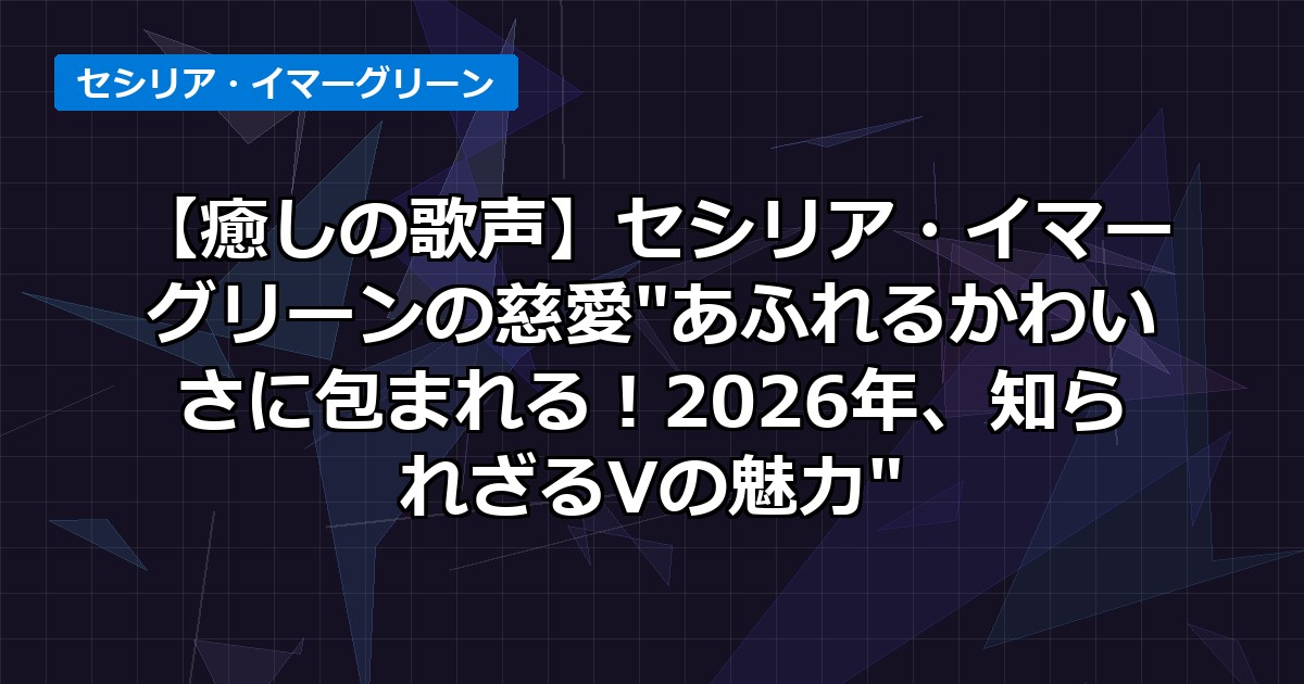 今回は、2026年のVTuber界で輝きを放つセシリア・イマーグリーンさんの多岐にわたる魅力を深掘りしました。