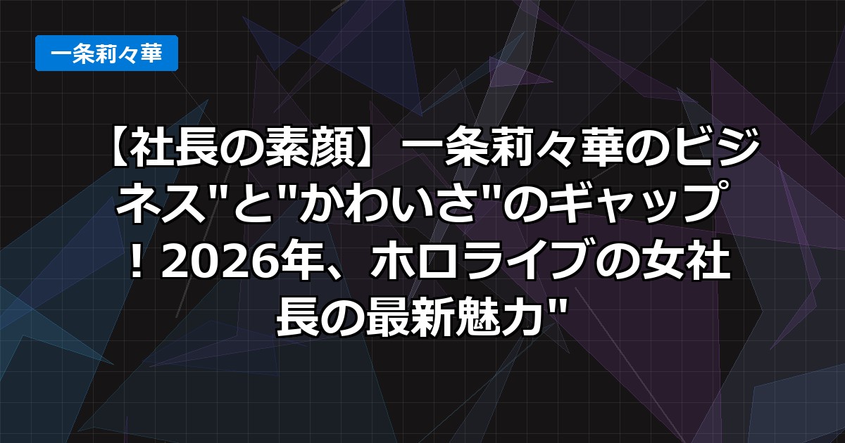 今回は、ホロライブReGLOSSの輝ける「一条莉々華」社長について、2026年の最新情報も交えつつ、その魅力を徹底深掘りしていきます!