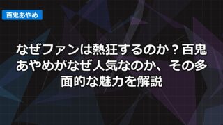 やっほー!V-Walker編集長のタカハシだぞ!今回は、VTuber界の歌姫ことAZKiちゃんにスポットを当てていくよ。マジで尊い存在だよね。「AZKi なぜ人気?」って疑問、抱いている人も多いんじゃないかな?彼女がVTuberシーンで唯一...